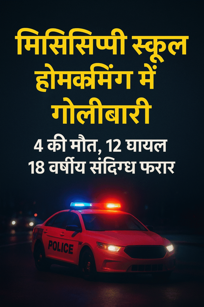 Instantvarta newsdesk मिसिसिपी, (11 अक्टूबर 2025)-अमेरिका के मिसिसिपी राज्य में शनिवार तड़के एक स्कूल के होमकमिंग कार्यक्रम के दौरान भीषण गोलीबारी हुई, जिसमें कम से कम चार लोगों की मौत हो गई और 12 अन्य घायल हो गए। यह घटना लीलैंड (Leland) शहर के मुख्य बाजार इलाके में हुई, जहां बड़ी संख्या में लोग लीलैंड हाई स्कूल के होमकमिंग समारोह का जश्न मना रहे थे।
